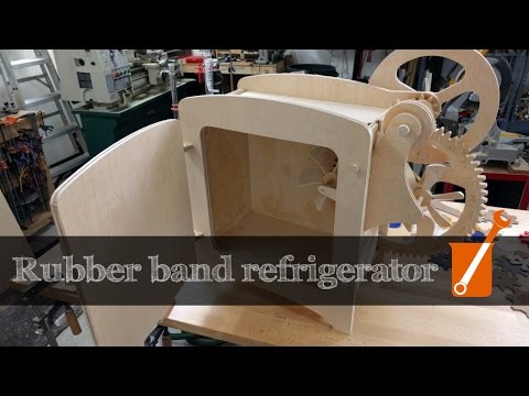 Si antes de dejar que la goma elástica se contraiga se deja enfriar primero (a temperatura ambiente) al soltarla y absorber calor la goma y sus proximidades se enfriaran por debajo de la temperatura ambiente. Esa particular propiedad es la que aprovecha Ben Krasnow de Applied Science para construir un frigorífico o un refrigerador que reduce la temperatura de su interior a base de estirar y contraer gomas elásticas.El vídeo muestra todo el proceso de construcción del refrigerador, que incluye el uso de la herramienta Shaper Origin, una máquina de corte controlada por ordenador que se maneja con las manos.